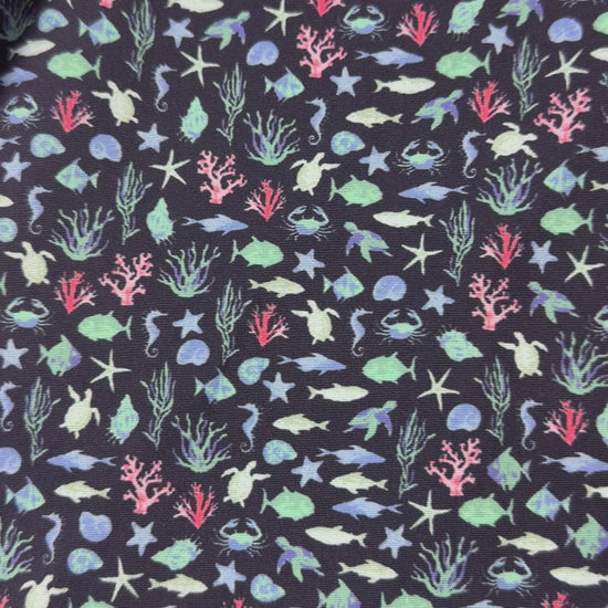 Crafted from premium stretch woven fabric, this shirt delivers all-day comfort and flexible movement. The navy base and marine life pattern make it easy to pair with shorts, chinos, or swim trunks for versatile summer looks with standout coastal flair.