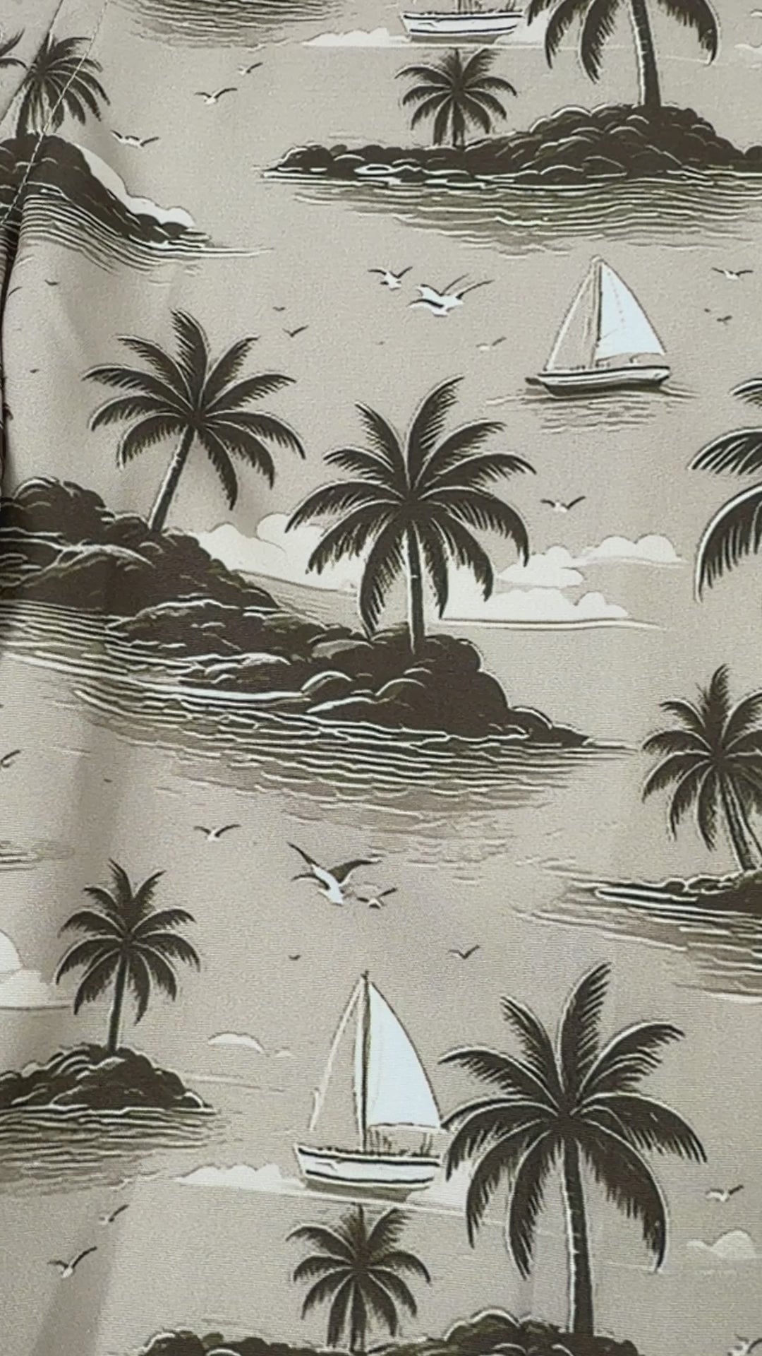 • Tropical “My Isle” pattern in khaki hues